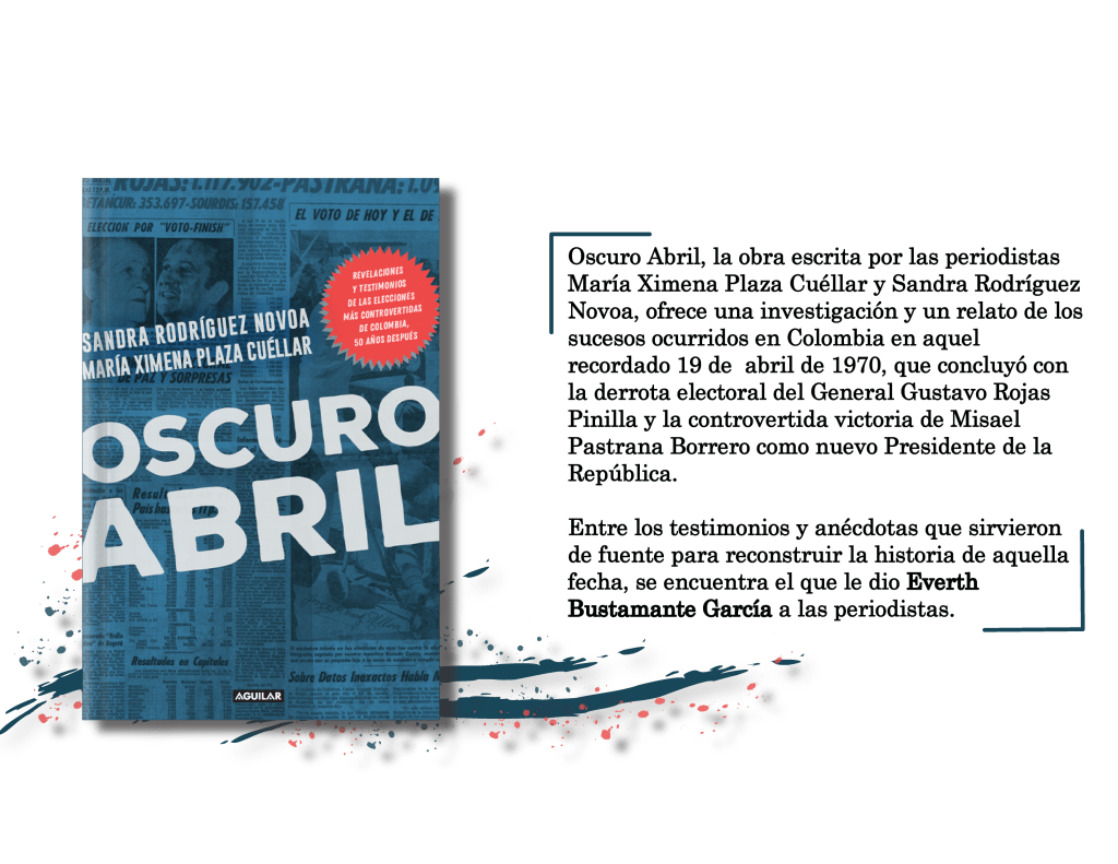Sus páginas narran, entre muchas otras, las historias de los hechos que vivió uno de los personajes por ellas entrevistados, Everth Bustamante García. Para la época en que sucedieron los acontecimientos, Everth era un joven de apenas 21 años de edad que daba sus primeras pisadas en la política. Tras un resultado exitoso en la primera jornada de aquel 19 de abril, al ser elegido como uno de los concejales más votados del municipio de Zipaquirá, los sucesos que tuvieron lugar en la noche de ese oscuro abril y en la mañana siguiente, cambiarían por completo el destino de sus pasos.